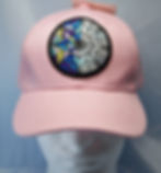 Purchased caps embellished with embroidery designs (bought from designers). Designs are either embroidered directly onto caps