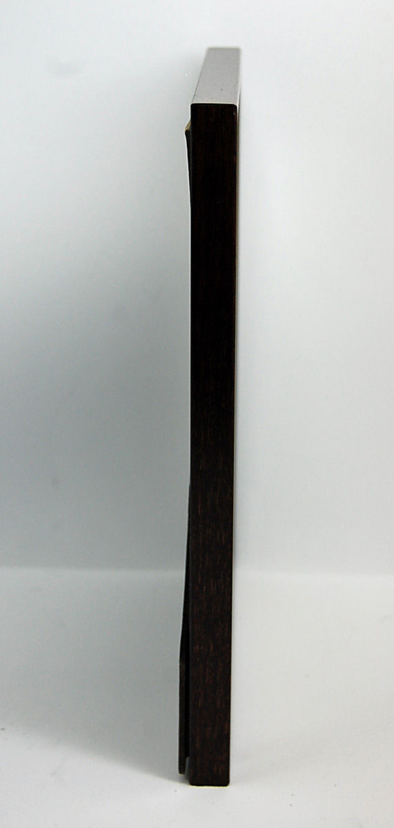 Artwork is framed either in a 6" x 8" black plastic frame with glass or a 7" x 9" brown plastic frame with glass -